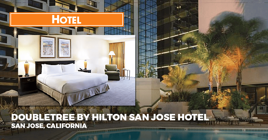 Less than five minutes from San Jose International Airport via free shuttle and ten from downtown San Jose. Shopping, restaurants, entertainment, and several companies including Paypal, Roku, Yahoo, and NVIDIA, are all within five miles. We offer over 56,000 sq. ft. of meeting space, five dining options, and an outdoor pool and whirlpool.
